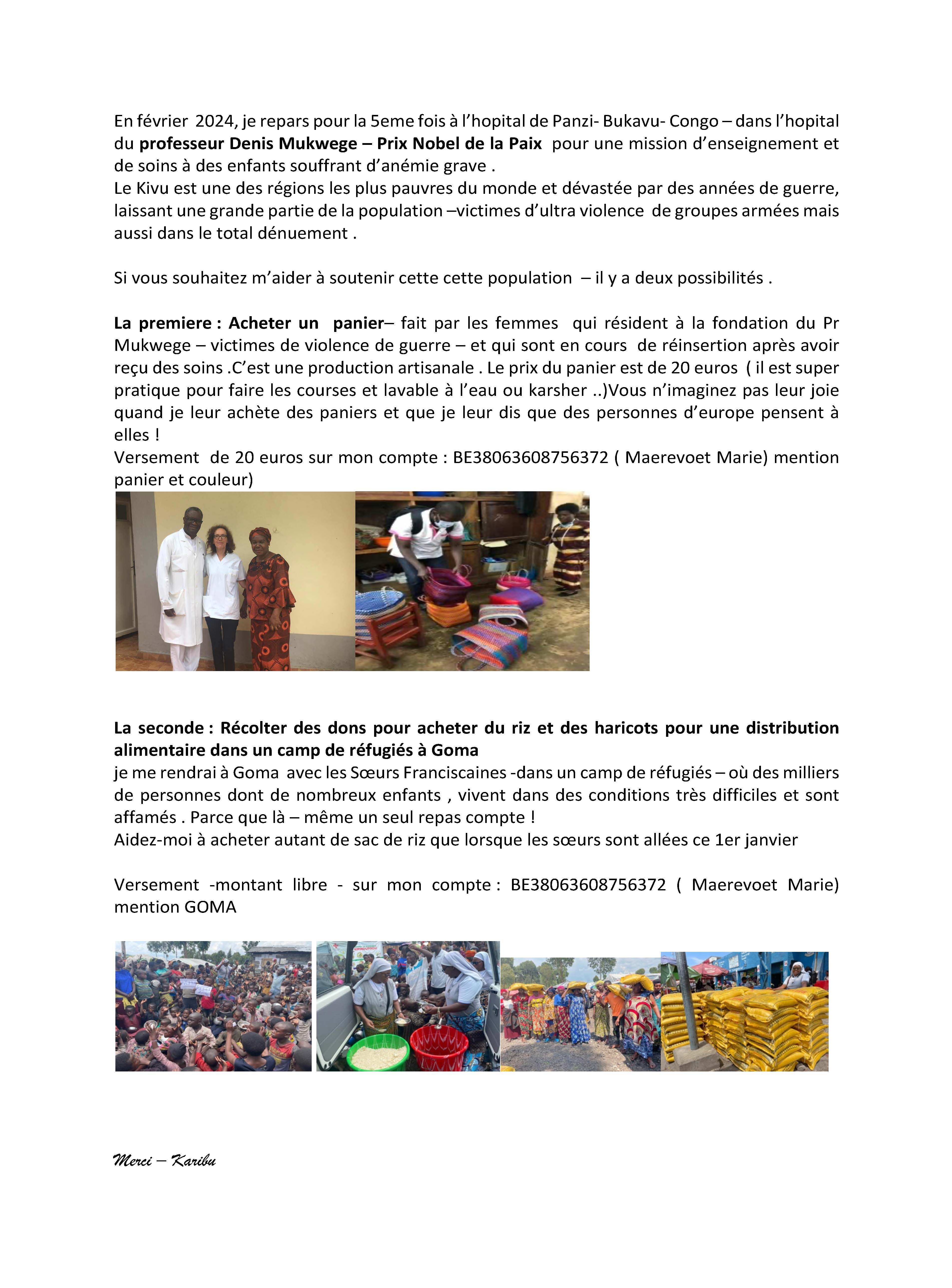 • à supporter les actions de Kesho Congo ( 20 euros permettent de