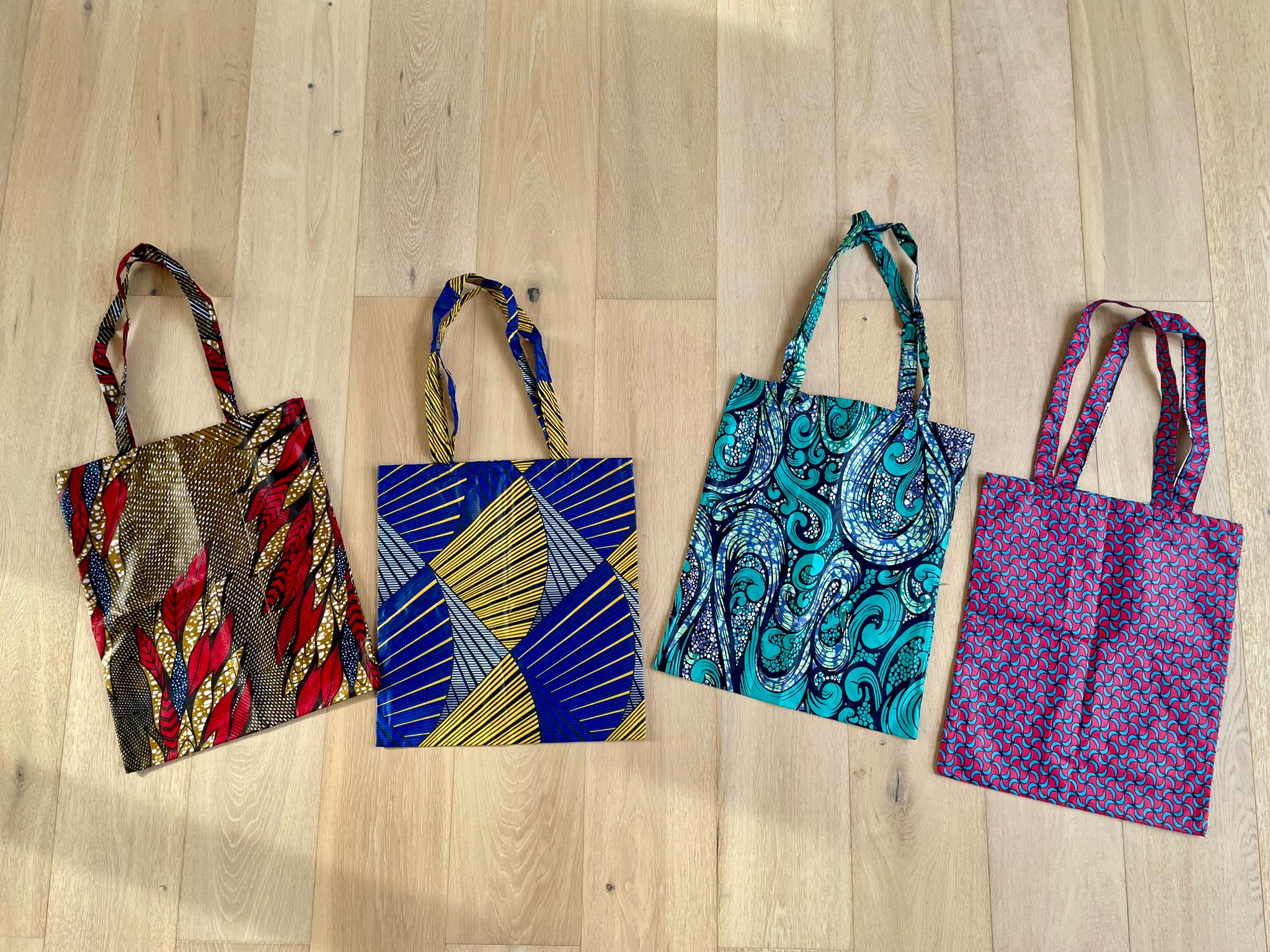 J’ai rapporté avec moi de magnifiques sacs confectionnés à la main par les travailleuses de Kesho Congo.